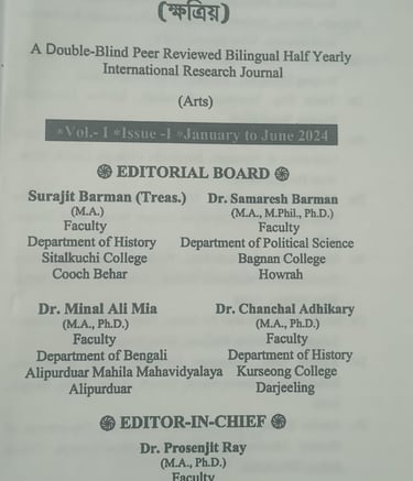 We are thrilled to present the renewed and revitalized Kshatriya with the release of Volume I, Issue I. This editorial note marks the beginning of an exciting new phase for this peer-reviewed research journal. As the Editor-in-Chief, I am honored to lead the editorial team and foster a culture of academic excellence, innovation and collaboration. This journal was once upon a time a monthly mouthpiece of Rangapur Kshatyriya Samiti edited by Jogendra Nath Roy and Prosanna Kumar Barma, renowned social reformers cum intellectuals of Rajbanshi society. Its journey started in the year 1921 CE in the British colonial period at Rangpur (undivided Bengal) and it was closed after some years. Thus, a century of its outset is over. Over the months, Kshatriya had been at the forefront of disseminating groundbreaking issues of Rangpur Kshatriya Samiti as its mouthpiece in the past. Building on this legacy, we embark on a journey to refine and expand our scope to accommodate the dynamic landscape of modern research. Our vision is to become a premier platform for the exchange of ideas, discoveries, and advancements, encouraging interdisciplinary studies and promoting the use of cutting-edge methodologies. Accessibility and the open exchange of knowledge are paramount in today's global research landscape. Therefore, we are committing to maintain an open-access policy, enabling unrestricted access to published articles since the next issues. With the re-launch of Kshatriya, we invite researchers and scholars/social scientists from around the world to submit their latest works. We welcome diverse perspectives, original research papers, research reports, summary of thesis/dissertation, systematic book reviews and methodological advancements. This first issue consists of eight new articles and an old issue of